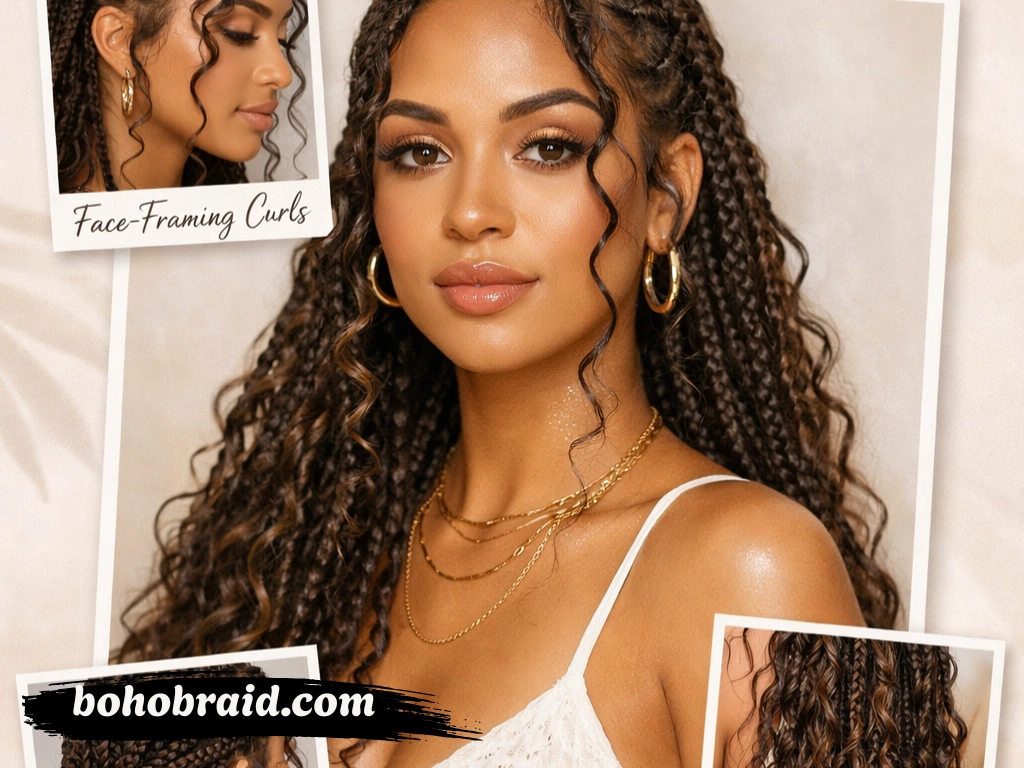 You can also choose between small bohemian braids for a fuller, longer-lasting style or medium to large braids for faster installation and a bolder finish. Length also matters, with shoulder-length, mid-back, and waist-length options being the most common. The curly hair used in the style can vary from loose waves to defined spiral curls, allowing each person to create a personalized and modern braided look.