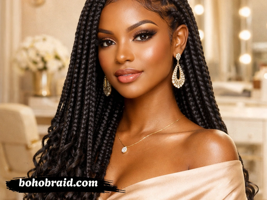 This hairstyle is especially popular among people who want a protective style that still looks glamorous and fashion-forward. Unlike traditional box braids, boho french curl braids often appear lighter, softer, and more natural.