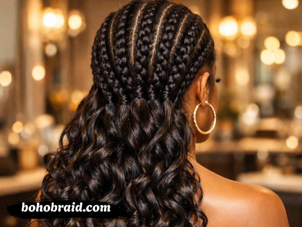 It also makes installation easier for the braider, especially when parting, feeding in hair, and adding curly pieces. If the hair is too slippery, the braids may loosen faster. If it is too coarse, the style can feel stiff and less elegant.