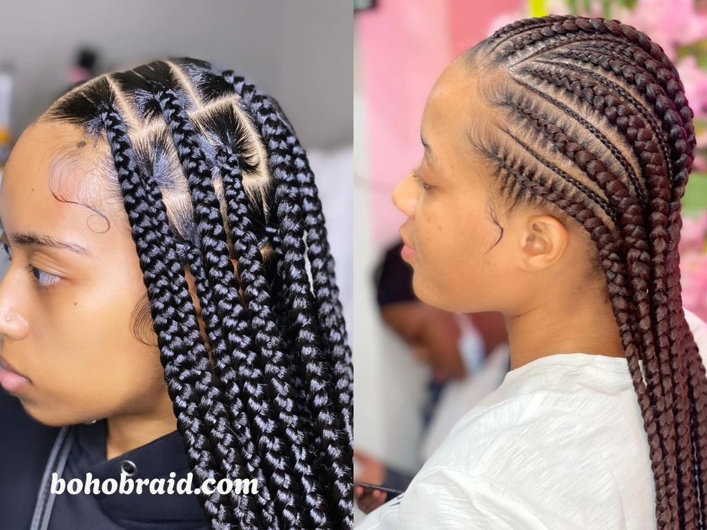 This combination makes them more customizable than plain straight-back cornrows, but often quicker and lighter than a full head of box braids.
