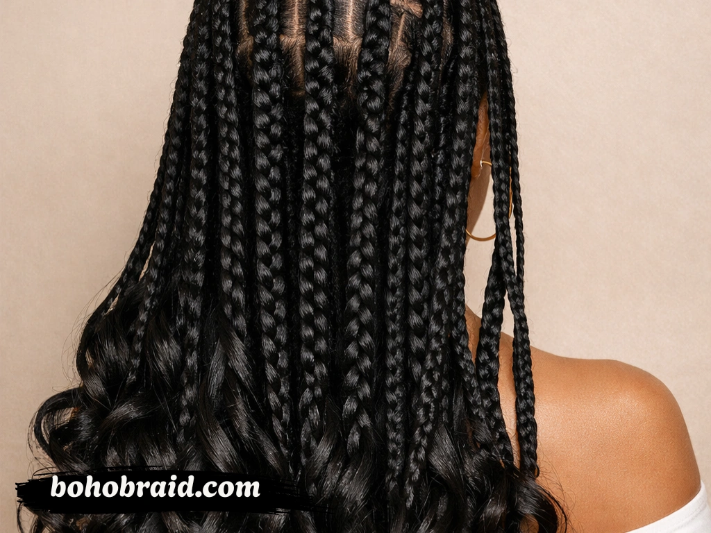 Length also matters when choosing this look. Shoulder-length knotless braids with curly ends are practical and lightweight. Mid-back or waist-length versions are more dramatic and ideal for those who want a statement hairstyle. If you prefer a boho look, longer lengths with more visible curls at the ends often create the most striking finish.