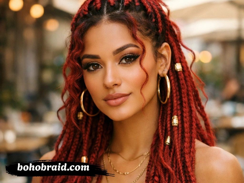 You can also experiment with side parts, middle parts, or braided edges. With so many options, red boho braids allow you to create fresh looks again and again.